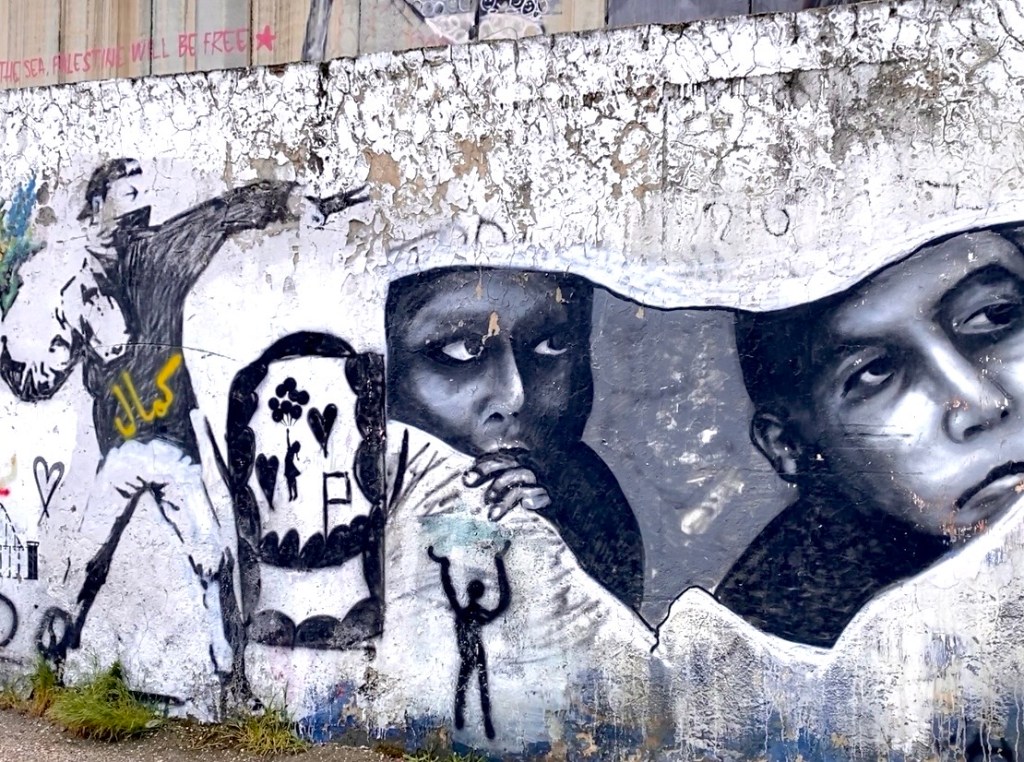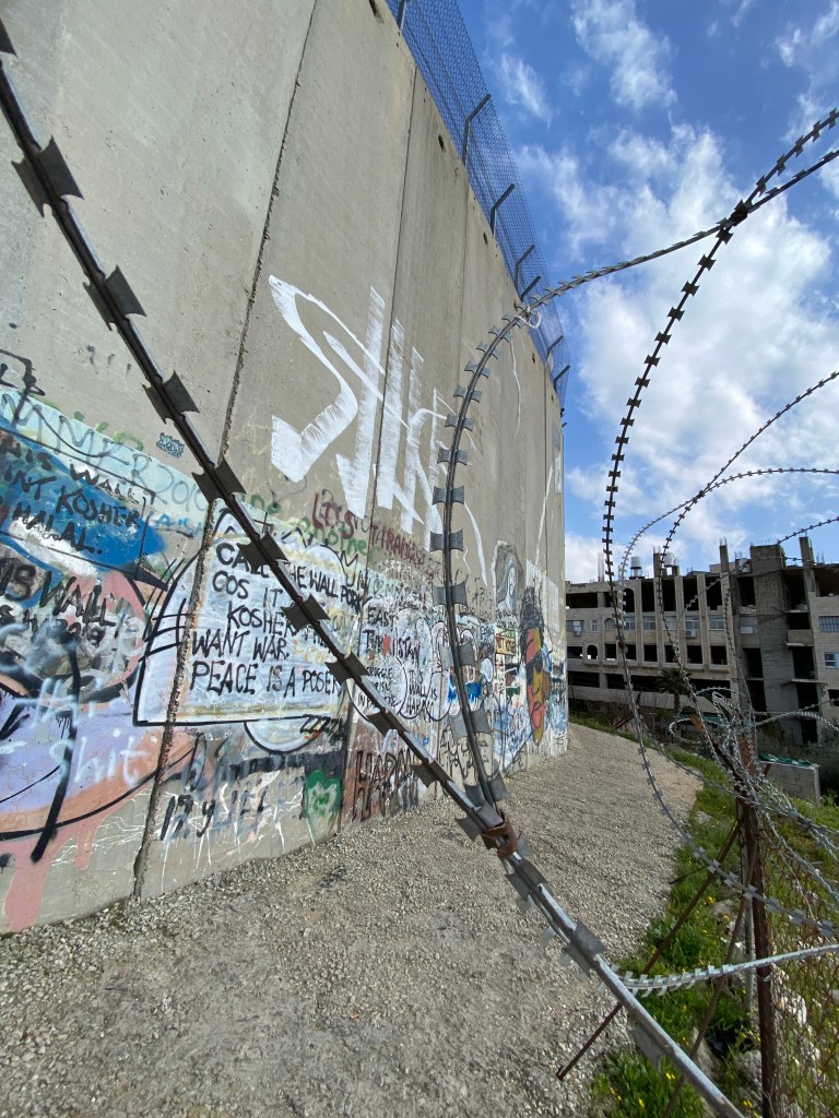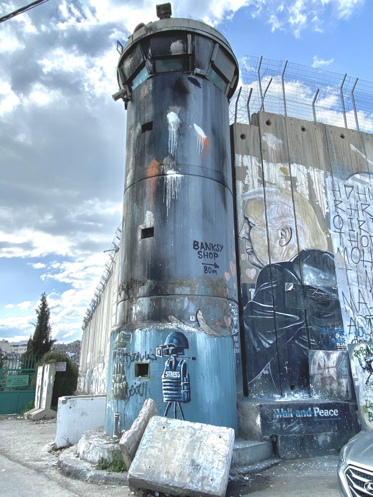 While a short car ride away, the ripple effect of the conflict in Gaza was palpable. Reconciling the profound changes from previous visits proved difficult. Gone were the tourists and religious pilgrims that would normally be packing the narrow cobblestone streets or waiting in line for hours for a chance to experience all the iconic Christian sites that Bethlehem has on offer. Desperation hung in the air and emanated from eyes of shopkeepers and taxi drivers. Once proud proprietors of thriving businesses, now urgently encouraged you to enter their shops where the inventories of local crafts look dusty, tired, and convey desperation while the shopkeepers drop their shoulders in humiliation and beg for money should a transaction not take place. And all this stood in contrast to the joy I experienced with Palestinians attending the wedding of our friend Ayed. As always in conflict, people display the most incredible resiliency to carry on, to love, to mourn, to care for one’s children, to survive. Despite Ayed’s briefing that his wedding would be a subdued affair since “This is not a time for celebration,” his guests were not on the same page. It quickly evolved into an evening of singing, dancing and raucous celebrations. Like that little chuckle with George the shopkeeper, we find those little bits of respite during dark times. Even in the face of genocide.